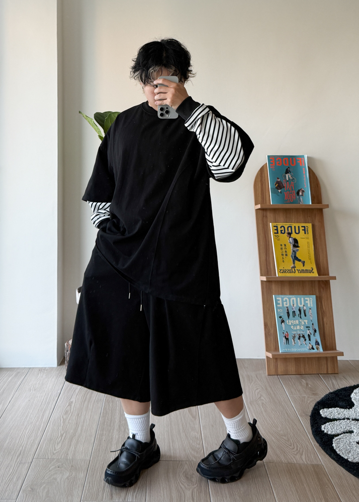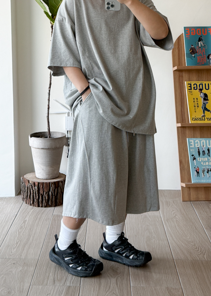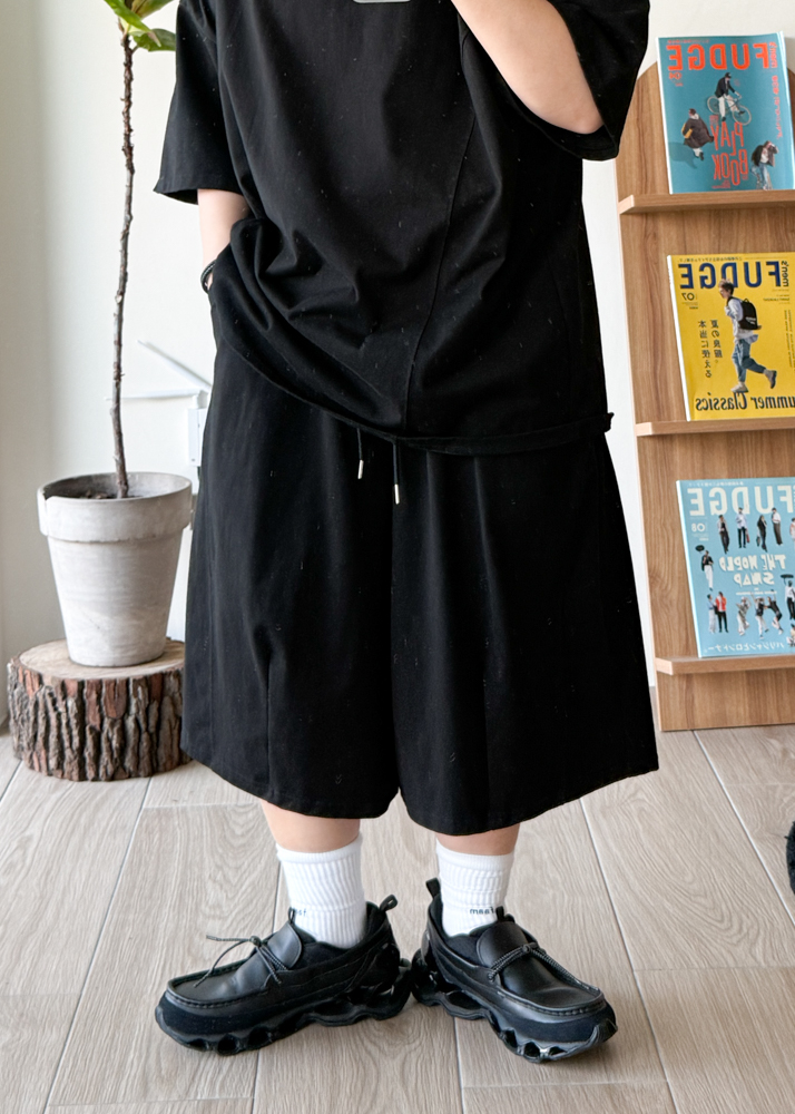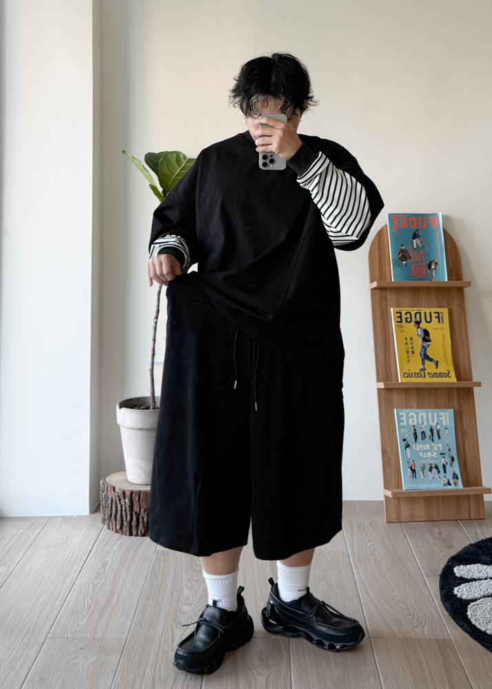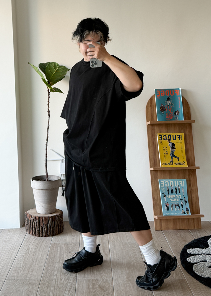版型 全鬆緊腰 繭型短褲