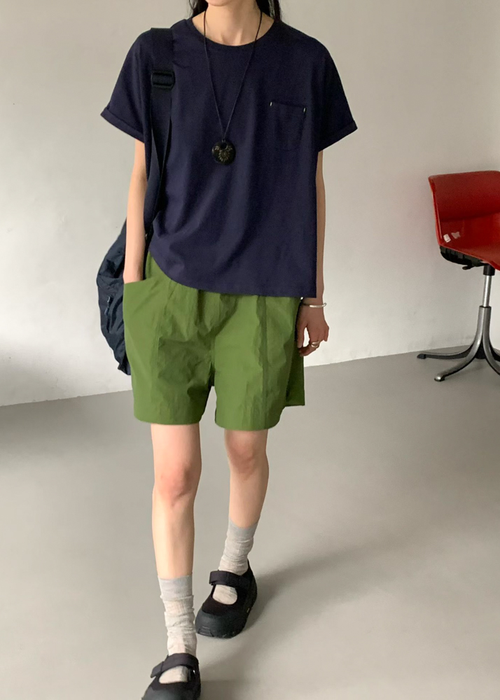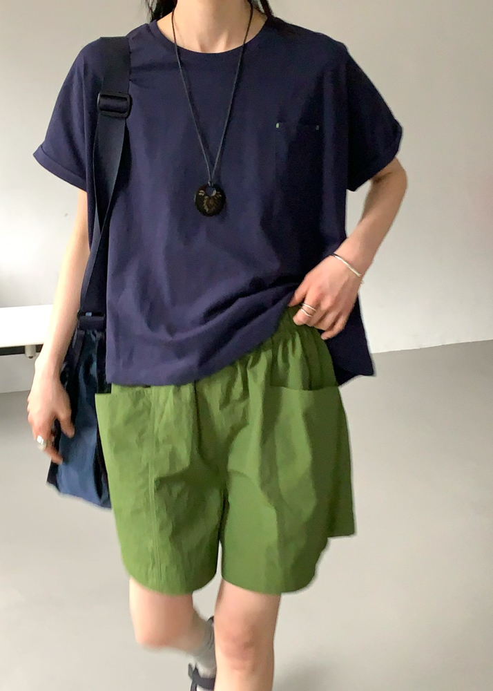 版型 全鬆緊腰 膝上短褲